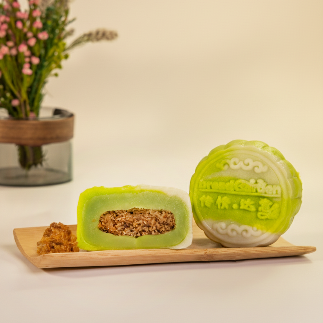 Wrapped in a soft, chewy snowskin, this mooncake teases the palate with the fragrant elegance of pandan lotus and a luscious Gula Melaka coconut centre. Naturally sweet, aromatic, and delightfully indulgent, it’s a treat that sparks joy.
